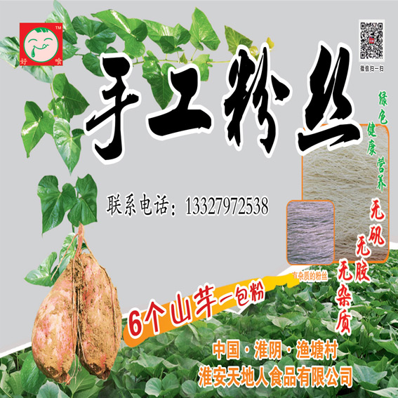 ★我國南北方都有山芋粉絲的生產(chǎn),山東、安徽、江蘇蘇北等自古盛產(chǎn)山芋粉絲,特別是淮陰區(qū)漁塘村“好喰 ”牌手工山芋粉絲是純綠色有機(jī)食品(無雜質(zhì)的手工粉絲)最為著名。這種粉絲完全采用傳統(tǒng)的生產(chǎn)工藝,百分之百的山芋原料,用深層地下泉水制作,不添加任何添加劑,是市場上難得一見的純天然綠色食品,號(hào)稱中國最好吃的手工山芋粉絲,深受顧客喜愛。