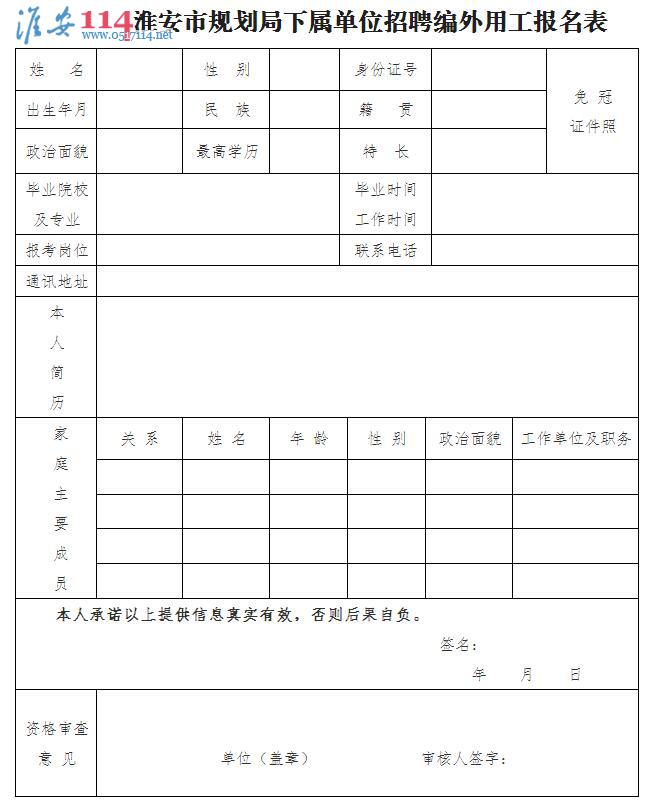 附件:淮安市規(guī)劃局下屬單位招聘編外用工報名表