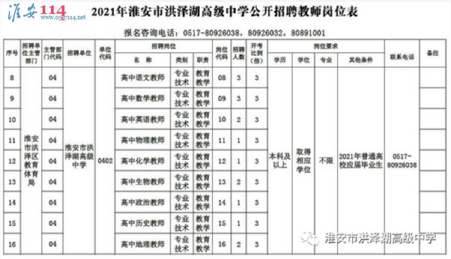 淮安百姓網(wǎng)關(guān)鍵詞:2021年淮安市洪澤湖高級中學(xué)公開招聘教師公告