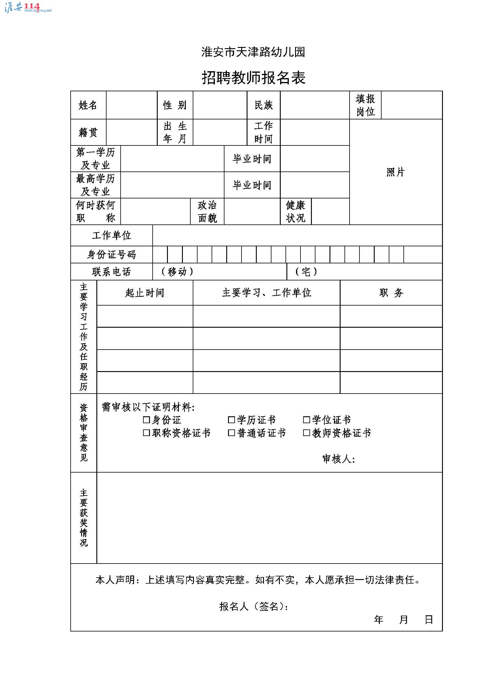 3.材料審核:報(bào)名人員須持本人身份證、學(xué)歷學(xué)位證書(shū)及崗位相關(guān)的證書(shū)原件及復(fù)印件,近期同底2寸免冠證件照2張,上交《淮安市天津路幼兒園公開(kāi)招聘工作人員報(bào)名表》和《健康信息表》(詳情請(qǐng)點(diǎn)擊閱讀原文或掃描二維碼均可)。