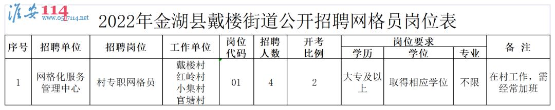 淮安百姓網(wǎng)關(guān)鍵詞:2022年戴樓街道公開招聘專職網(wǎng)格員簡章