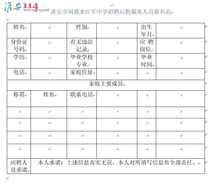 附件:淮安市周恩來紅軍中學(xué)招聘后勤服務(wù)人員報名表