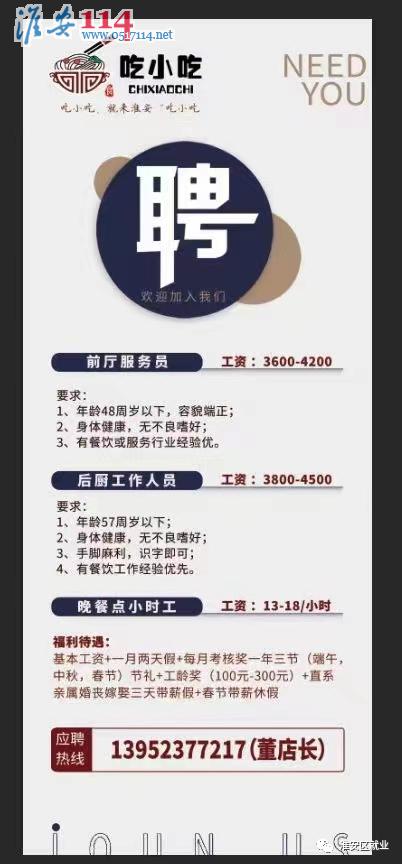 淮安百姓網(wǎng)關(guān)鍵詞:吃小吃招聘服務(wù)員、后廚和小時(shí)工